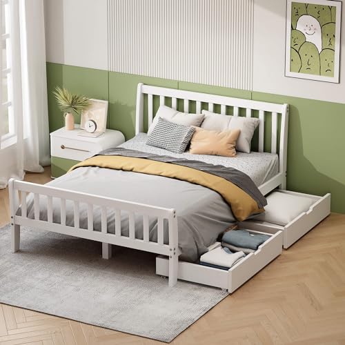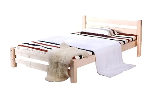 [en.casa] Holzbett Raisio 140×200 cm mit Lattenrost Bettgestell Bett Kiefernholz Massiv Jugendbett Doppelbett Gästebett Weiß