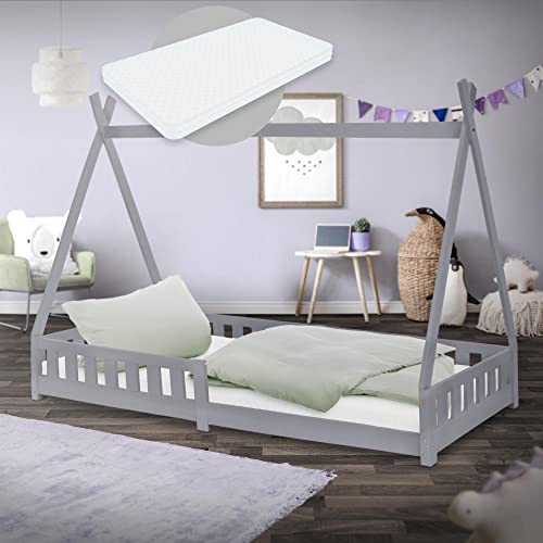 Angebot! Ursprünglicher Preis war: €336,59€286,19Aktueller Preis ist: €286,19.Produkt kaufen[en.casa] Kinderbett Treviolo mit Matratze 120x200cm Hausbett Holzbett für Kinder mit Rausfallschutz Bettgestell mit Lattenrost Spielbett Kiefernholz Weiß