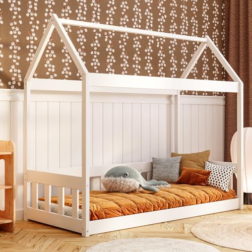 €192,49Produkt kaufen[en.casa] Kinderbett Treviolo Hausbett 140 x 200 cm Holzbett für Kinder mit Rausfallschutz Bettgestell mit Lattenrost Kiefernholz Weiß