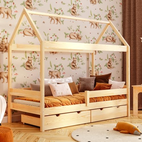 Angebot! Ursprünglicher Preis war: €125,79€118,39Aktueller Preis ist: €118,39.Produkt kaufen[en.casa] Kinderbett Cerro Hausbett Jugendbett Bett in Haus-Optik Montessori Bett aus massiver Kiefer Bettgestell mit Lattenrost Holzfarben 140x200cm